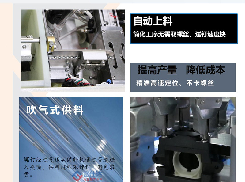 轉臺式自動鎖螺絲機主要由多軸鎖付系統、自動送釘系統、同步作業(yè)臺、PLC控制系統等組成,設備根據產品生產要求定制送釘系統及鎖付系統,可實現一次輸送并擰好多顆螺絲的效果,通過設計同步作業(yè)臺,增強人機互動,多工序同步進行,提升效率。日常操作中,作業(yè)員僅需不停取放產品即可,設備自動輸送螺絲、自動擰好所有螺絲。