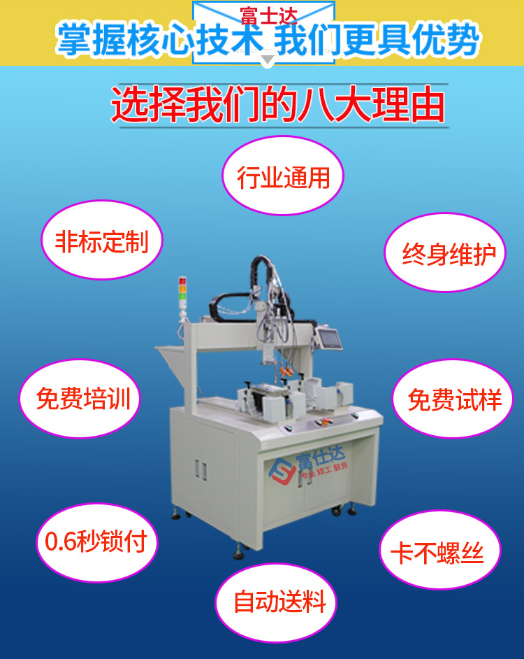 富仕達(dá)自動鎖螺絲機(jī)尺寸可根據(jù)產(chǎn)品尺寸大小及生產(chǎn)線情況來設(shè)計(jì),定制真正好用的自動鎖螺絲設(shè)備。