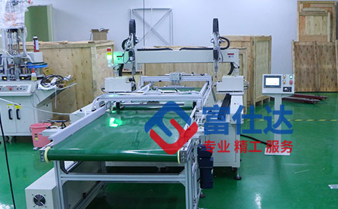 LED面板燈包括框形鋁合金外殼(散熱器與燈槽)、LED燈珠、擴散板、導(dǎo)光板、反光片或反光膜和后蓋。擴散板、導(dǎo)光板、反光紙和后蓋依次排列安裝在框形鋁合金外殼內(nèi),LED面板燈珠安裝在鋁合金外殼周邊的燈槽內(nèi)并位于擴散板內(nèi)上部。LED燈外框并用多顆螺絲來緊固。這里采用了富仕達的流水線自動擰螺絲機。